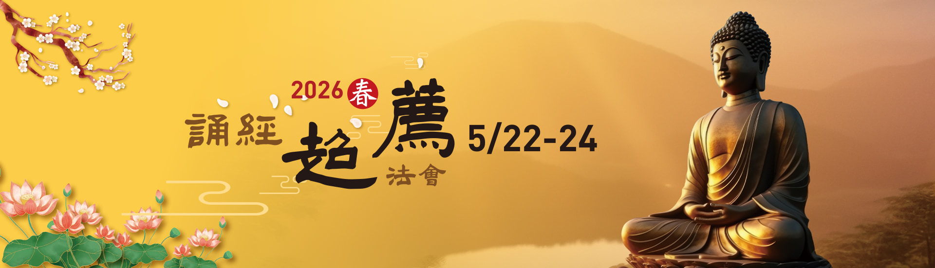 福智僧團將於 5/22(五)~5/24(日) 月稱光明寺舉行2026春季誦經超薦法會,恭誦《大般若經》,5/24佛誕日會浴佛。免費填寫「紅色祈福單」、「黃色超薦單」已上線,請把握機會填寫。